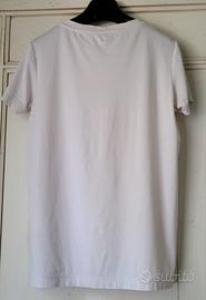 T-shirt Jil Sander, tg. S, 100% cotone, girocollo; colore avorio. Come nuova. Manica corta. Larghezza spalle cm 38 Larghezza ascella/ascella cm 45 Lunghezza manica cm 17 Lunghezza complessiva cm 63.