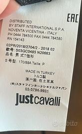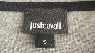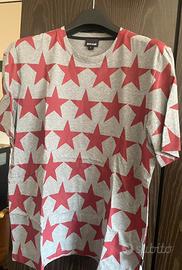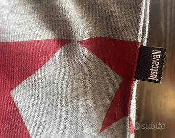 T-shirt nuova di Just Cavalli da uomo con stelle rosse (davanti e retro) su sfondo grigio Taglia S