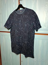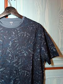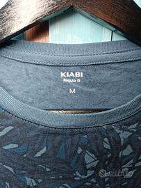 T-shirt Kiabi blu con fantasia floreale, nuova mai utilizzata, leggera e traspirante, 100% cotone. Misure: 75cm x 42cm circa.
