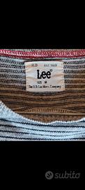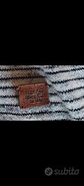 T-shirt leggera a maniche lunghe righe sottili firmata h.d. Lee Mercantile Company, realizzata nel 2015 durante il rilancio heritage del brand. Presenta tessuto morbido in cotone, collo e polsini a costine e patch in pelle con logo storico. Un capo essenziale ma ricercato, che unisce estetica moderna e richiami autentici all'archivio Lee. Tg M ma veste come una L. Io sono alto 1,75 x 70 kg quindi regolatevi in base alle misure che sto per darvi. Misura spalle 45, lunghezza felpa 65, misura ascelle 55, lunghezza maniche 55.