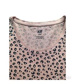 Maglia a maniche lunghe H&M con stampa leopardata su sfondo rosa; super leggera e comoda, perfetta per un look casual, ma con carattere. Taglia 12-14 anni, perfetta per ragazzine/preteen, ma veste bene anche su ragazze più grandi che portano una S/XS.