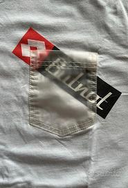 T-shirt bianca con logo Lotto x But Not, collaborazione speciale. Taschino trasparente sul petto. nuovo senza cartellino.