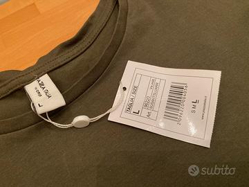T-shirt lunga, taglia L, maniche a sbuffo, verde militare, per le misure vedi foto