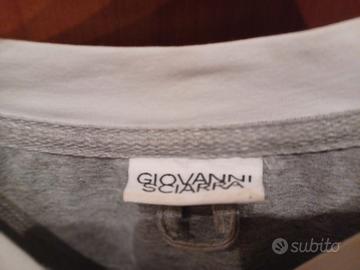 Propongo in vendita una bellissima maglietta / t-shirt da uomo con eccellente tessuto, poiché 90% cotone, prodotta in Italia - made in Italy -, avvitata e con stilista Giovanni Sciarra sinonimo di un taglio di maglietta perfetto. Taglia Italia Large (L): qualità delle rifiniture, come mostra lo stacco tra il collo e la maglietta o le maniche (colore bianco e grigio), veramente bella da indossare e calza in maniera ottimale.