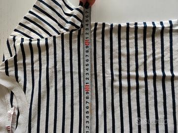 Maglietta a righe Zara, vecchia divisa, indossata solo 2 turni per taglia errata. Lavata subito. Fondo bianco e righe blu. Ottime condizioni.