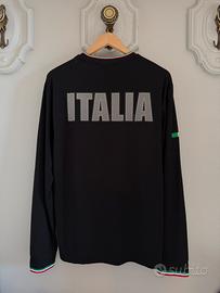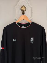 T-shirt girocollo in misto cotone con le maniche lunghe uomo EA7. Divisa ufficiale dei giochi Olimpici e Paralimpici invernali di Milano - Cortina 2026. Colore nero. Logo istituzionale CIP sul petto a sinistra. Logo EA7 sul petto a destra. Personalizzazione sulla schiena con maxi stampa “ITALIA”. Taglia L. Spalle - 48cm, da ascella ad ascella - 55cm, lunghezza - 72cm, lunghezza manica - 68cm. Nuova con cartellino.