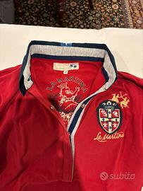 Colore rosso con polsini e colletto blu. Originale La Martina. Taglia 2 (corrispondente a 40/42).