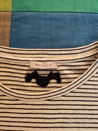 T-shirt Marella, maniche con volant, taglia S, colore bianco e nero