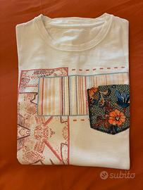 Vendo T-shirt maschio di Block Eleven color bianco con taschino floreale e disegno geometrico taglia S/M , praticamente nuova
