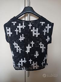 T.Shirt ner con disegni bianchi, marca T.W., tg M