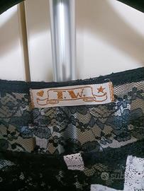 Vendo il seguente capo di abbigliamento: - T-Shirt donna di colore nero, con disegni bianchi, marca T.W., tg. M, materiale 90% Poliestere e 10% elastine, ottime condizioni, costo 3 euro. Andrea