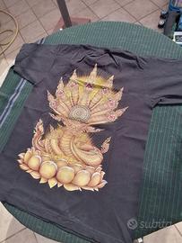 T-shirt nera tailandese con Naga fronte/retro taglia L.