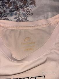 T-Shirt Nike rosa pastello con scritta bianca e arancione, per ragazza e bambina, indossata pochisisme volte