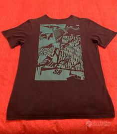 T-shirt Nike SB dry fit colore blu con logo frontale e stampa sul dorso, taglia M, 60% cotone e 40% poliestere, lunghezza cm 68, larghezza cm 50, spalle cm 44, usato, buono stato