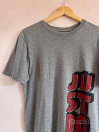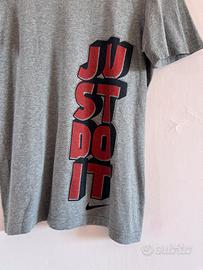 Maglietta Nike originale colore grigio con stampa grande “JUST DO IT” laterale in rosso e nero e logo sul fondo.