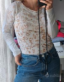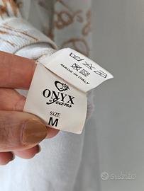 Top a maniche lunghe Onyx Vintage anni 2000 Y2K Colore azzurro/turchese/bianco Con scritte in oro Veste una S