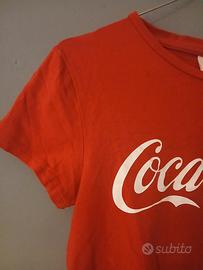 Iconica T-shirt Coca-Cola con logo bianco nella versione storica "minimalista" (nessun'altra parola come ad esempio 'drink' o 'enjoy', né baffo da "Cola" verso sinistra) su campo rosso, senza nessuna altra scritta o immagine. Semplice taglio women su design ordinario per una taglia S (vestibilità slim fit) in edizione limitata del 2020.