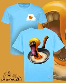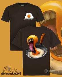 t-shirt personalizzata realizzata dall artista Personelugubri. 100% cotone, logo con ovetto sul lato cuore e stampa grande sulla schiena.