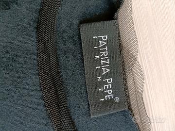 t-shirt in cotone con stampa fulmine viola, taglio molto particolare (aderente con maniche larghe), rifinitura in rete sul collo, veste bene fino a una tg. 44
