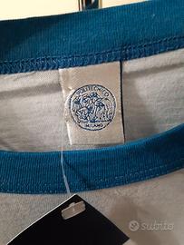 Vendo t shirt a maniche corte logata Politecnico di Milano 1863. Merchandising originale, taglia large (slim, una via di mezzo tra medium e large), colore grigio azzurro con finiture a contrasto blu chiaro. Misure: spalle cm 41, torace cm 48, lunghezza cm 66. Nuova e nella sua confezione originale logata Politecnico di Milano.