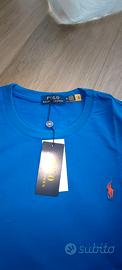 T-shirt polo Ralph Lauren in 100% cotone taglia M blu e logo ricamato rosso