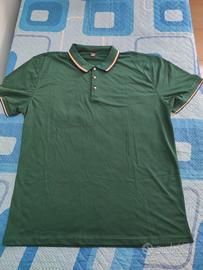 Maglietta polo da uomo a maniche corte. - Colletto a contrasto con righe. - Chiusura con bottoni. - Tessuto a nido d'ape.
