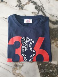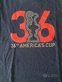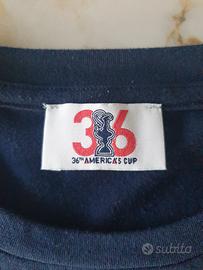 T-shirt unisex marca Prada America's Cup taglia 12 anni. 100 % cotone colore blu con grande scritta logo sul davanti. Girocollo, maniche corte.