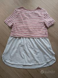 Il design è molto intelligente: la parte superiore a righe rosa e bianche nasconde un pratico scollo a incrocio (stile "wrap") nello strato inferiore bianco. Questo permette di allattare in modo comodo, veloce e discreto.
