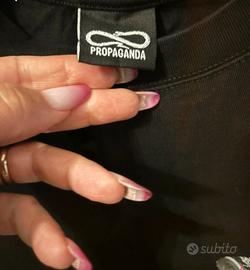 Stile urban e provocazione visiva si fondono in questa maglia oversize firmata Propaganda.