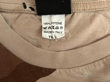 T-shirt Propaganda in cotone, colore beige marrone con logo nero. Taglia L Lunghezza cm 68