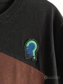 Vintage usata Nera con inserto a forma di pentagono marrone E ricamo con testa e punto di domanda
