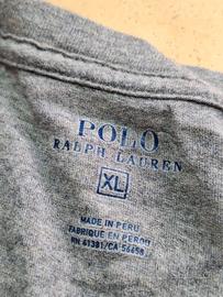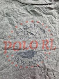 Vendo t-shirt Ralph Lauren originale, colore grigio, maniche lunghe, con grafica "Polo Ralph Lauren" sul petto. Taglia XL.
