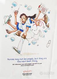 Maglietta con stampa centrale: “NURSES MAY NOT BE ANGELS, BUT THEY ARE THE NEXT BEST THING” (PNUR)