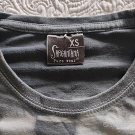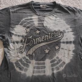 Maglietta grigia e bianca con stampa Formentera, 100% cotone. Ottime condizioni. Taglia XS = cm 43 di larghezza sotto le ascelle. Lunghezza cm 64. Valgono le misure in centimetri riportate: confrontatele con una vostra maglietta.