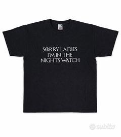 T-Shirt Screen Stars nera a maniche corte con stampa frontale bianca Sorry Ladies I'm In The Nights Watch, ispirata alla famosa serie TV Game of Thrones.