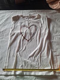 Maglietta senza maniche marca " I-Do." Ottimo cotone. Misure in foto. Rinforzi leggeri sulle spalle tipo spalline. Non traspare all altezza del seno ha una doppia tessuto sempre cotone. Bellissima. Mai usata
