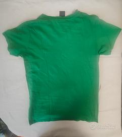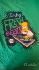 Maglietta verde da ragazzo 12/14 anni con stampa dei Simpson. - Personaggio Bart Simpson come DJ. - Scritta Funky Fresh Beats. - Taglia S. Misure in cm: Larghezza spalle 38; Lunghezza 56; Larghezza ascelle 42.