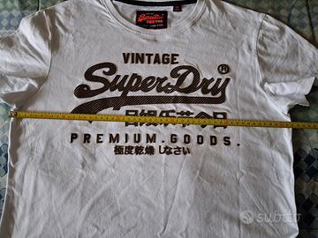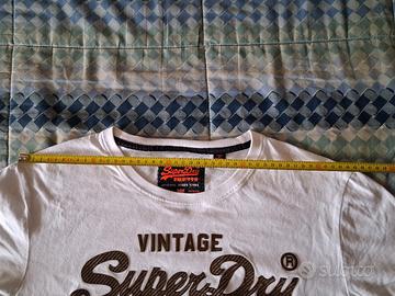 t shirt a mezze maniche, marca Superdry, colore bianco, taglia L, misure spalle cm 45, ascelle 52, lunghezza 66