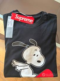 Vendo questa fantastica maglietta Supreme originale, collaborazione esclusiva con Peanuts, con Snoopy in stile skate su un logo Supreme rosso! 🎯