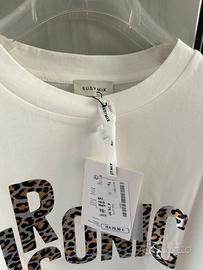 t-shirt Susy Mix donna nuova, taglia unica, veste abbastanza in quanto taglio scatoletta, manica risvoltata, prezzo euro 29,50