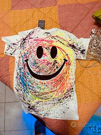 Maglietta T-shirt taglia M modello Smile, fronte e retro, arriva direttamente dalla Germania Nuova con ancora il cartellino attaccato, Ottima per discoteca feste eventi ecc fatta a mano artigianalmente, i colori risaltano con luce neon light Uv Wood Fluo Party disco, dj deejay