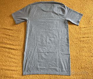 Maglia maglietta tecnica Domyos (Decathlon) taglia L di colore grigio usata poco. Molto lunga come da foto, altezza 78, larghezza 44.