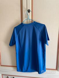 T-shirt Tennis Pro Blu Unisex. (Taglia unica, veste come una S-M uomo). Tessuto traspirante e leggero, maniche corte. (Piccola imperfezione di cucitura fissata con un punto in modo che non si sfili) vedi foto