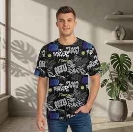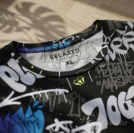 🖤 T-shirt nera con stampa graffiti all-over stile hip hop, vestibilità relaxed. 📐 Taglia XL: lunghezza 79 cm, petto 55 cm, spalle 50 cm. 🎨 Colore nero con stampe bianche, grigie, blu, viola e giallo fluo. 👕 100% cotone, jersey morbido con effetti spray e colature. ✅ Ottimo stato, nessun difetto. 🔎 Perfetta per outfit streetwear, y2k e old school hip hop. 📩 Scrivimi per info o offerte! 🚚 Spedizione veloce o ritiro a mano a Burago di Molgora 📍 #tshirt #streetwear #graffiti #hiphop #alloverprint #y2k #oldschool #terranova #nero #uomo #XL #cotone
