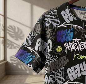 T-shirt, Terranova, graffiti, nera, XL, streetwear