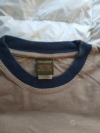 Realizzata in cotone di alta qualità, è morbida al tatto e super confortevole. Il colore è un bellissimo beige/cachi, facile da abbinare con tutto. Notare il piccolo logo Timberland ricamato sulla manica, un dettaglio che fa la differenza.