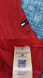Vendo T-shirt Tommy Hilfiger originale, colore rosso con logo frontale iconico.