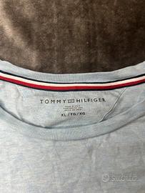 Vendo t-shirt originale Tommy Hilfiger da uomo, colore azzurro chiaro effetto mélange. Stile semplice e versatile, perfetta per l’estate o per un look casual pulito.