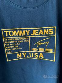 T-shirt tommy jeans colore blu taglia s Scritta in rilievo gialla