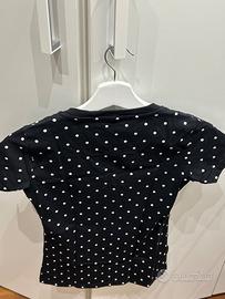 Vendo maglietta nera tg.s a pois bianchi con logo dorato frontale, vedi foto.